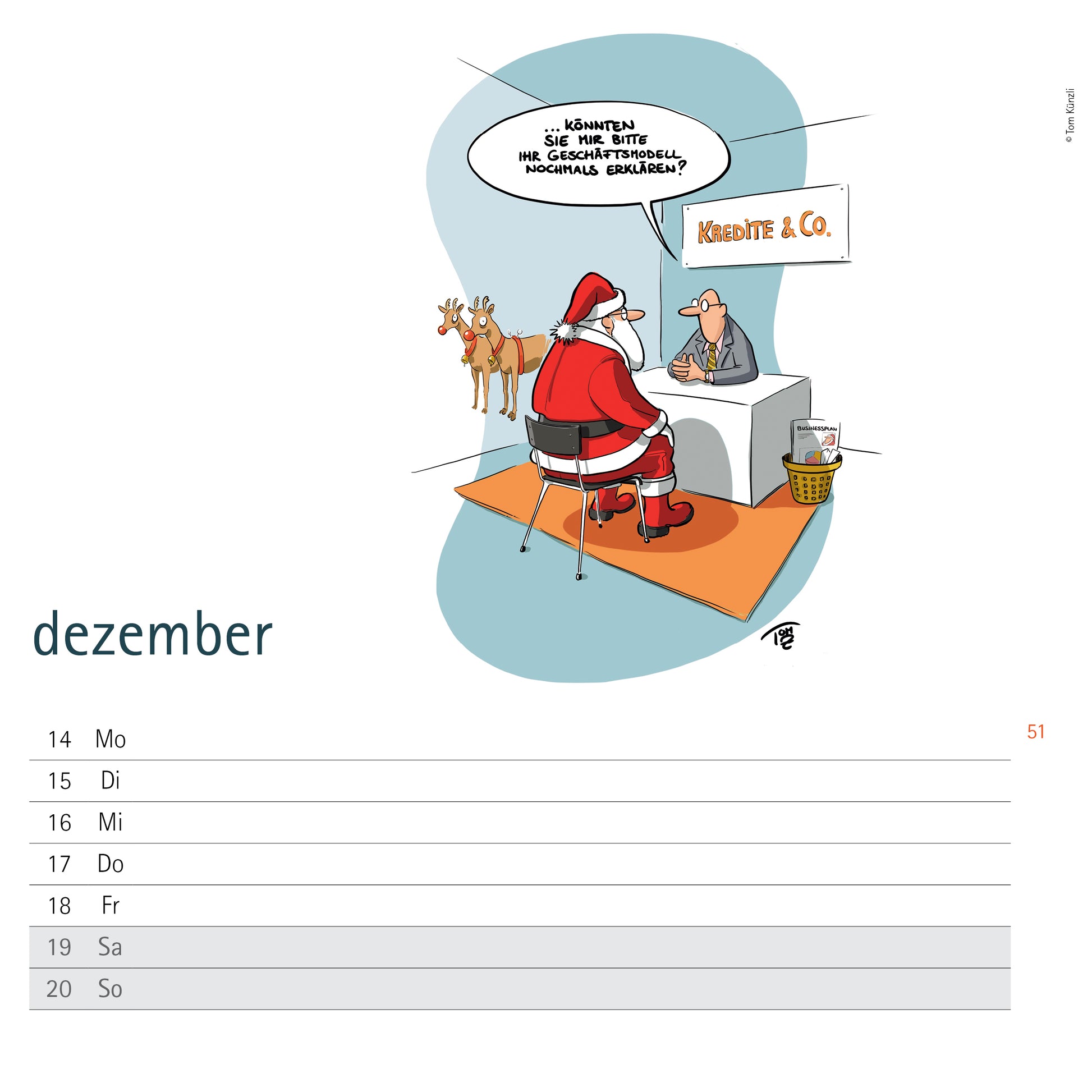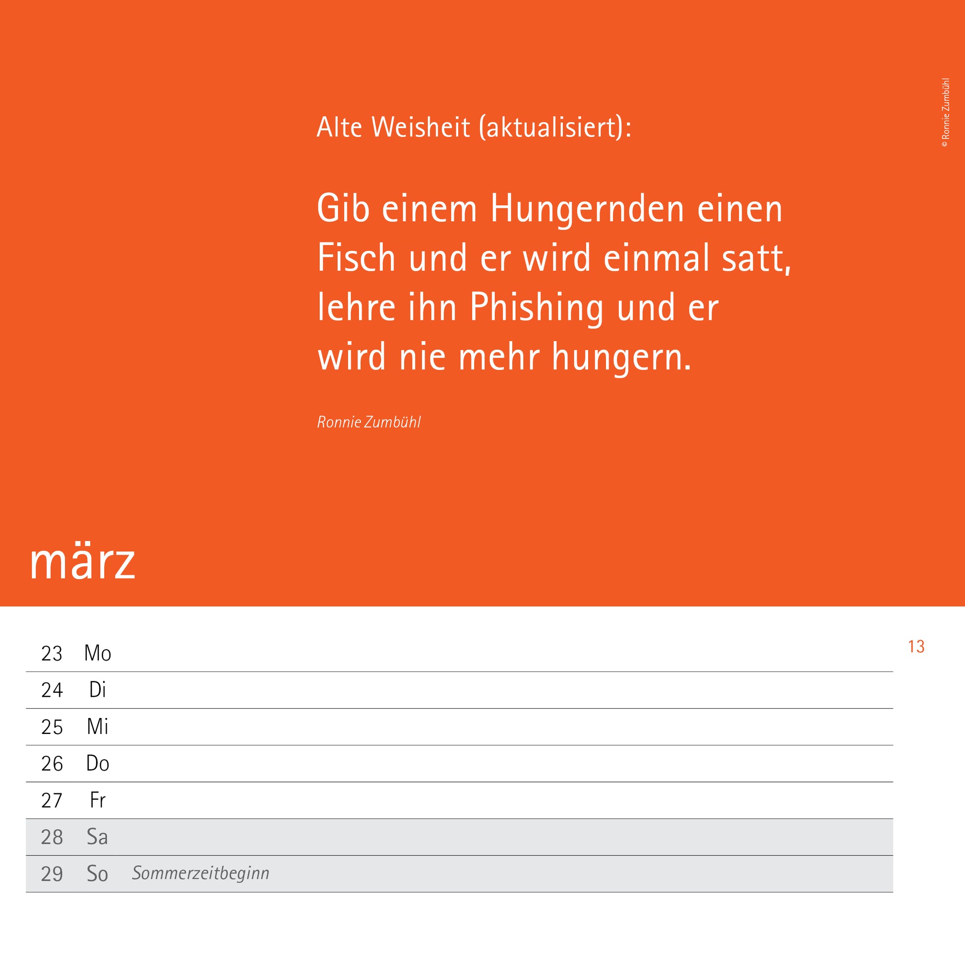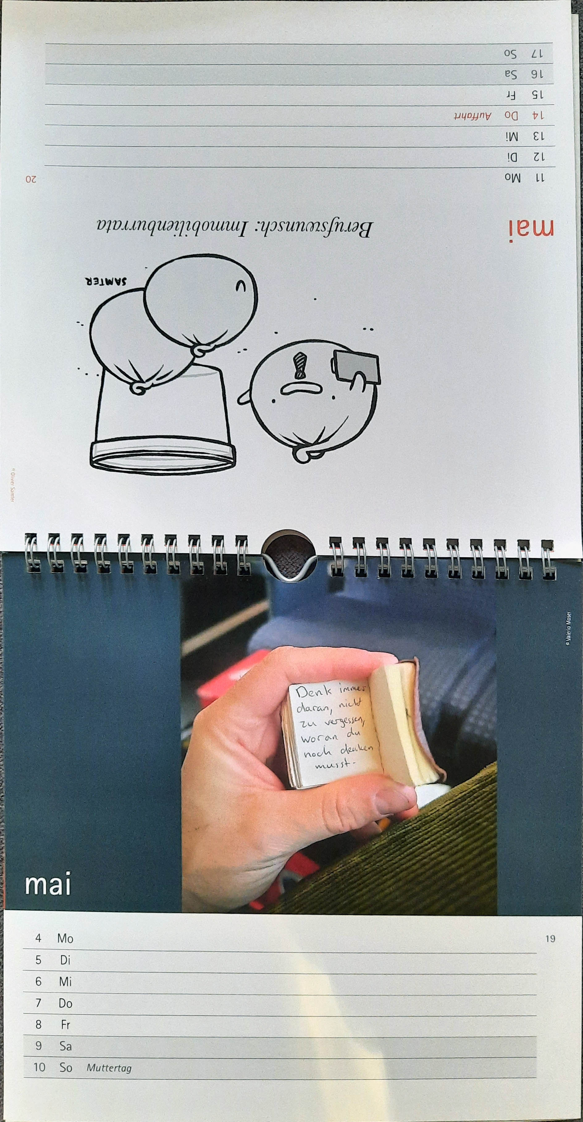 Wochenkalender 2026 mit Cartoons, Texten und Memes
